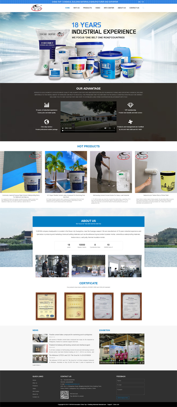 Guangdong Yunyan Special Cement Building Materials Co.,Ltd. have been specialized in manufacturing and exporting chemical building materials for 18 years, we have a broad of ranges that can meet all your needs relating to the real estate, such as villas, garage, hotel, shopping mall, hospital, commercial building etc.