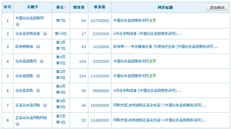 關鍵詞在百度排名數(shù)據(jù):(暫時只列出百度的排名數(shù)據(jù),其它搜索引擎的排名效果暫不列出)
